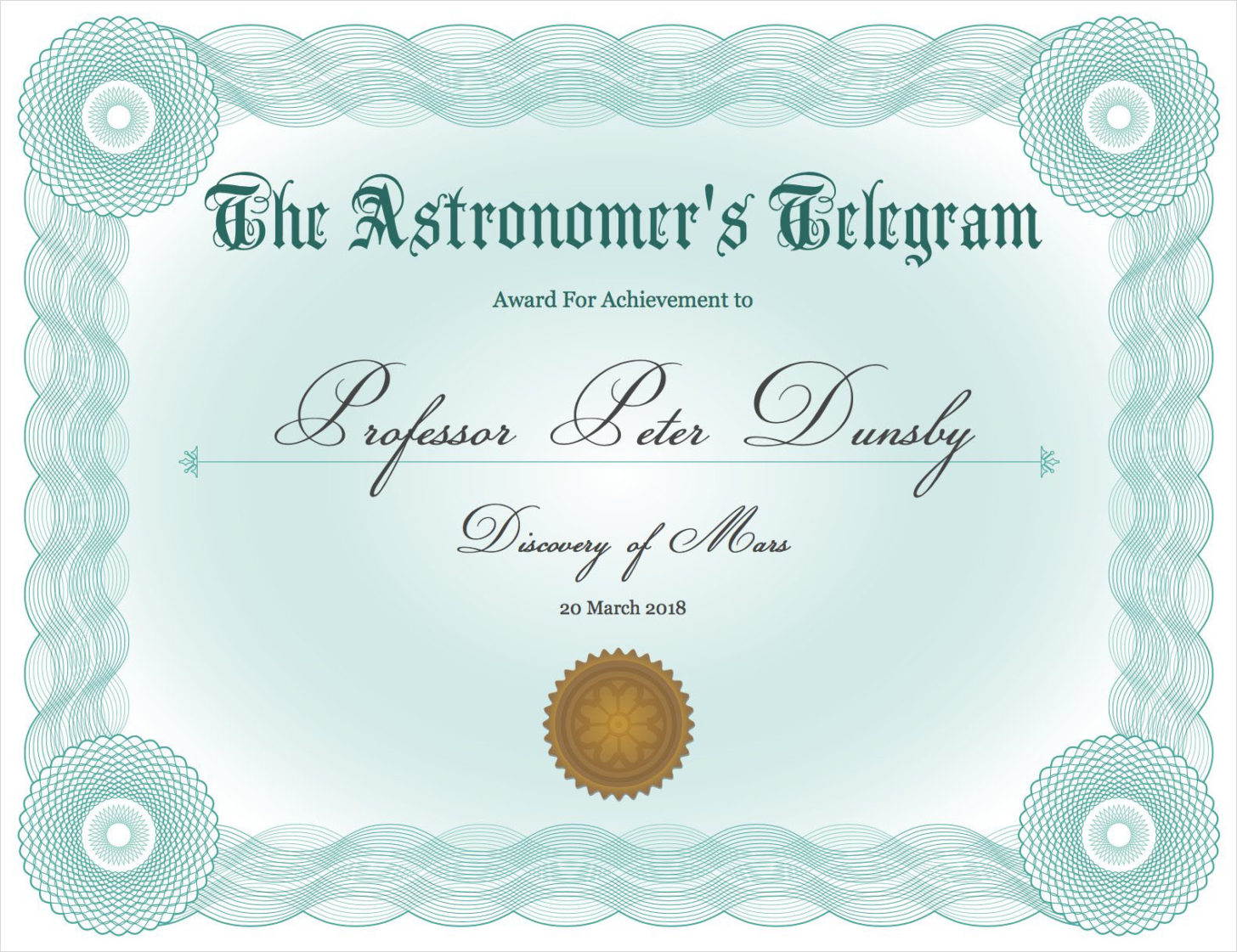 Хорошо это или плохо, но профессор получил именно то, что просил. Дальнейшее исследование показало, что этот яркий объект не что иное, как планета Марс, о чем Astronomer’s Telegram сообщил в отчете: «Объект, указанный в ATEL 11448, был идентифицирован как Марс». Кроме этого, Питеру Дансби был направлен поздравительный твит: «Первооткрывателю Марса. Поздравляем, Профессор Питер Дансби!».