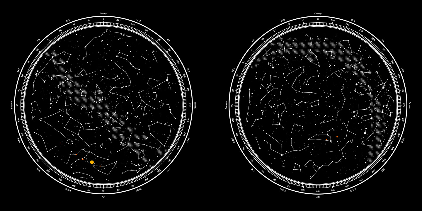 То, что мы видим на небе, зависит не только от времени, но и от точного места наблюдения. Звезды и планеты поднимаются и опускаются над горизонтом по-разному в зависимости от широты и долготы: смещение на сотню километров может изменить видимую картину неба.