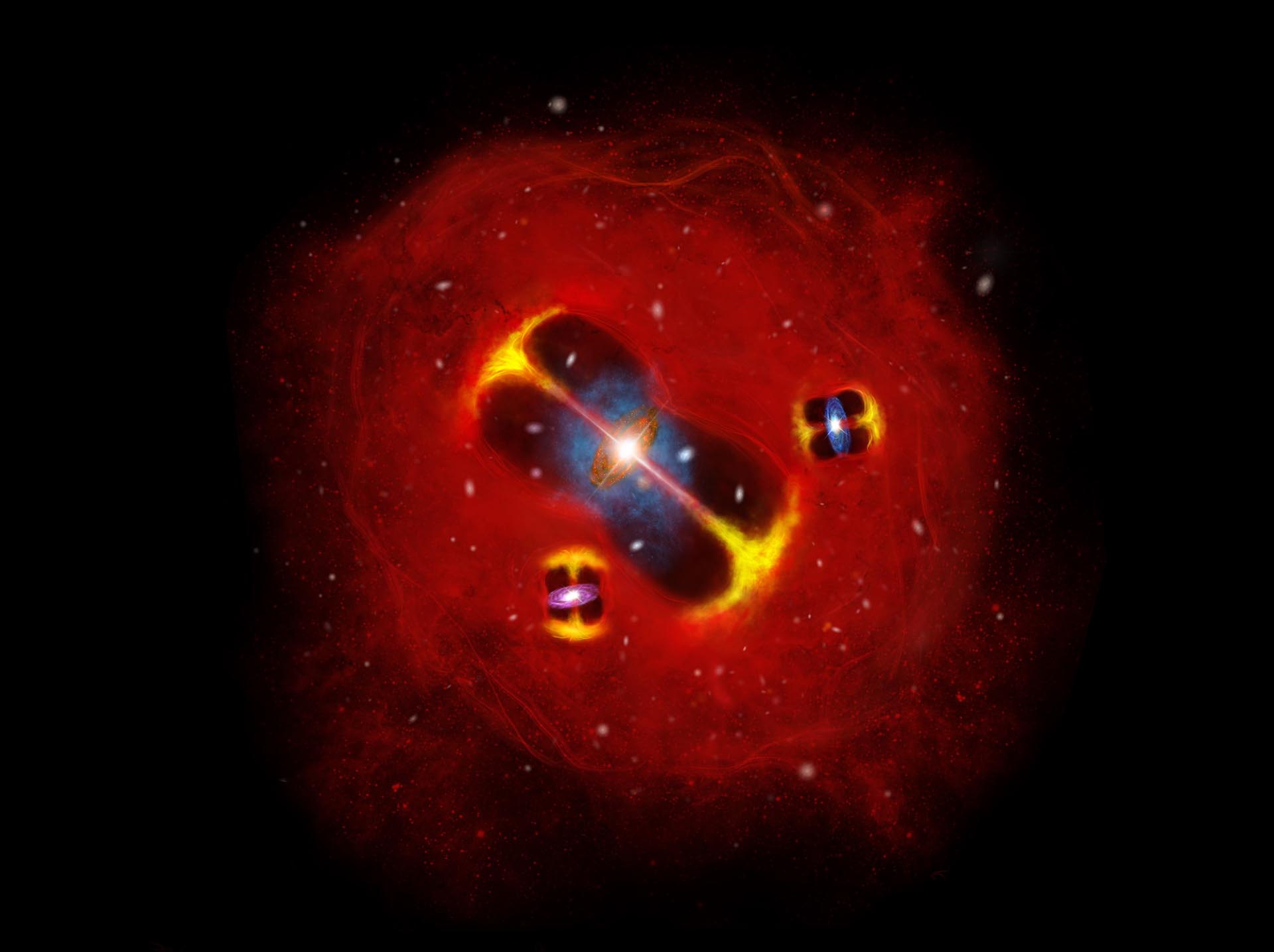 Астрономы предполагают, что источник аномального нагрева – три сверхмассивные черные дыры, обнаруженные в этом скоплении. Они уже на раннем этапе начали активно выбрасывать энергию, разогревая окружающий газ и влияя на формирование всей структуры.